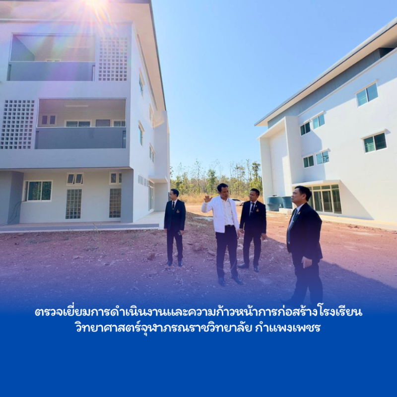 วันพฤหัสบดีที่ 5 กุมภาพันธ์ 2569 สำนักงานเขตพื้นที่การศึกษามัธยมศึกษากำแพงเพชร นำโดย ดร.ธนะณัช อินทา ผู้อำนวยการสำนักงานเขตพื้นที่การศึกษามัธยมศึกษากำแพงเพชร และคณะผู้เกี่ยวข้อง เข้าตรวจเยี่ยมการดำเนินงานและความก้าวหน้าการก่อสร้างโรงเรียนวิทยาศาสตร์จุฬาภรณราชวิทยาลัย กำแพงเพชร ในการนี้ นายวิรัช วันบรรเจิด ผู้อำนวยการโรงเรียนวิทยาศาสตร์จุฬาภรณราาชวิทยาลัย กำแพงเพชร พร้อมด้วยคณะผู้บริหาร ให้การต้อนรับและนำเสนอข้อมูลการดำเนินงาน ณ โรงเรียนวิทยาศาสตร์จุฬาภรณราชวิทยาลัย กำแพงเพชร