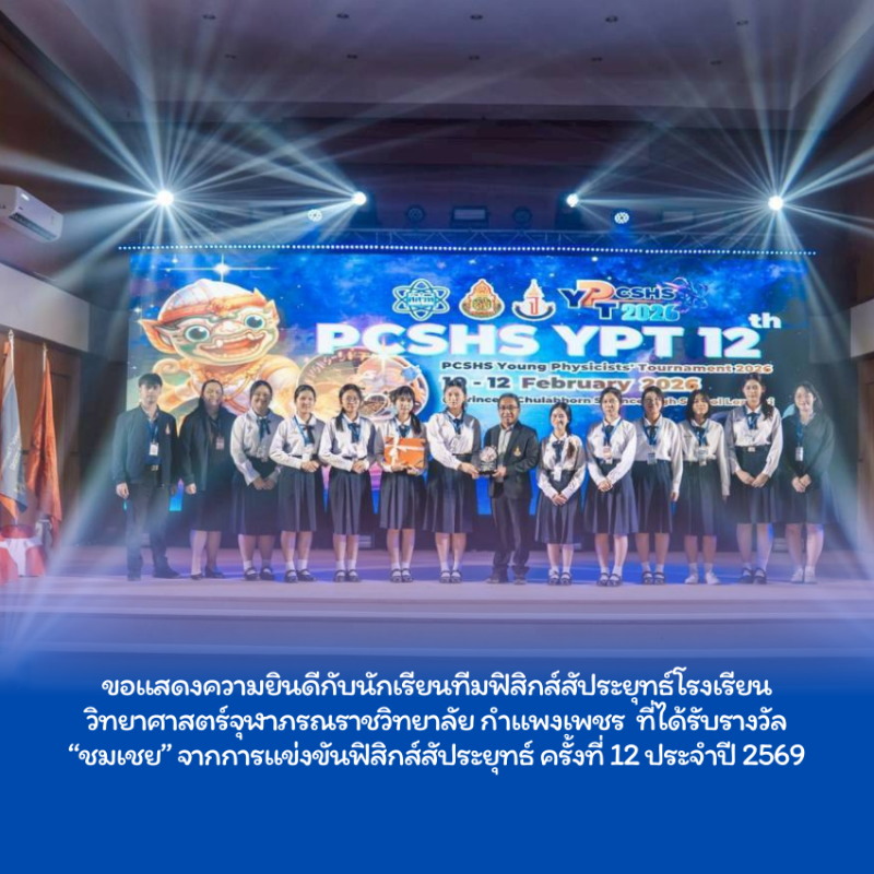 ขอแสดงความยินดีกับนักเรียนทีมฟิสิกส์สัประยุทธ์โรงเรียน วิทยาศาสตร์จุฬาภรณราชวิทยาลัย กำแพงเพชร ที่ได้รับรางวัล “ชมเชย” จาก...