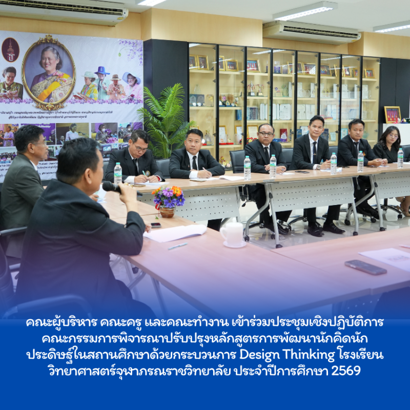 คณะผู้บริหาร คณะครู และคณะทำงาน โรงเรียนวิทยาศาสตร์จุฬาภรณราชวิทยาลัย กำแพงเพชร เข้าร่วมประชุมเชิงปฏิบัติการคณะกรรมการพิจารณาปรับปรุงหลักสูตรการพัฒนานักคิดนักประดิษฐ์ในสถานศึกษาด้วยกระบวนการ Design Thinking โรงเรียนวิทยาศาสตร์จุฬาภรณราชวิทยาลัย ประจำปีการศึกษา 2569 ณ โรงเรียนวิทยาศาสตร์จุฬาภรณราชวิทยาลัยพิษณุโลก เพื่อสนับสนุนภารกิจของโรงเรียนวิทยาศาสตร์จุฬาภรณราชวิทยาลัย ในการพัฒนานักเรียนให้เป็นนักคิดนักประดิษฐ์และนักวิจัยที่มีศักยภาพ โดยมุ่งส่งเสริมกระบวนการเรียนรู้ผ่านกระบวนการคิดเชิงออกแบบ Design Thinking เน้นฝึกทักษะความคิดสร้างสรรค์ การแก้ปัญหา และพัฒนานวัตกรรมที่เป็นประโยชน์ต่อสังคม พร้อมทั้งเปิดโอกาสในการเชื่อมโยงเครือข่ายการเรียนรู้ระดับนานาชาติอันเป็นก้าวสำคัญสู่การพัฒนาความเป็นเลิศด้านวิทยาศาสตร์และนวัตกรรมอย่างยั่งยืนต่อไป