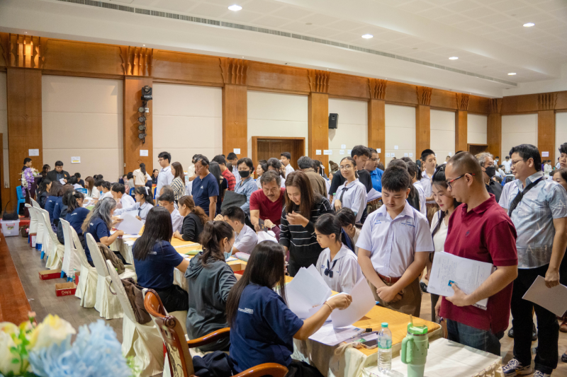 ผู้บริหาร ครู และบุคลากรร่วมต้อนรับนักเรียนใหม่ ม.4 และผู้ปกครองในการมอบตัวและทำสัญญาการเป็นนักเรียนเมื่อวันที...